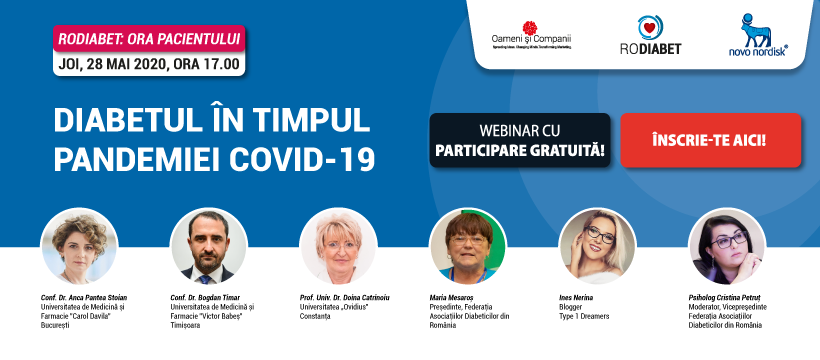 Portalul RoDiabet, cu susținerea partenerului Novo Nordisk, demarează din această lună seria de webinarii ”Ora Pacientului”. Tema primei ediții este ”Diabetul în timpul pandemiei Covid-19”.